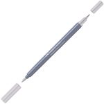 This water-based dye marker features two nibs: a soft flexible brush tip for artistic work and a metal-encased fineliner tip which creates a 0.4mm line for contours and finer details.