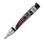 Uni Chalk Marker Pen PWE-5M: chalk-based markers for signwriting on non-porous surfaces, easily removed from such surfaces with a damp cloth. 5mm bullet tip is perfect for writing and smaller details.